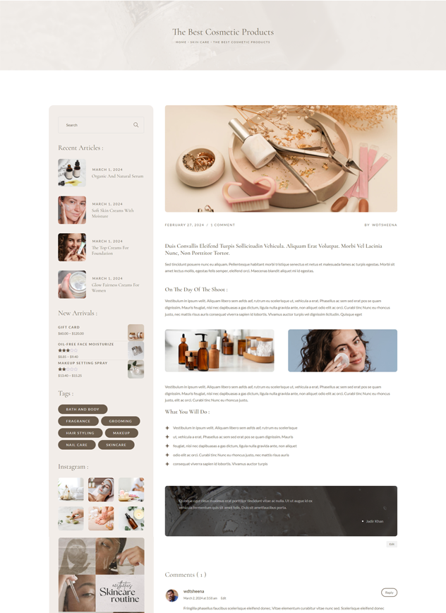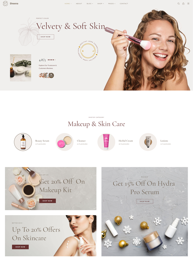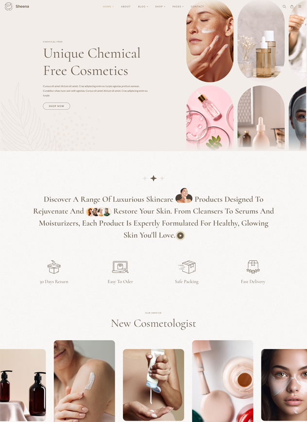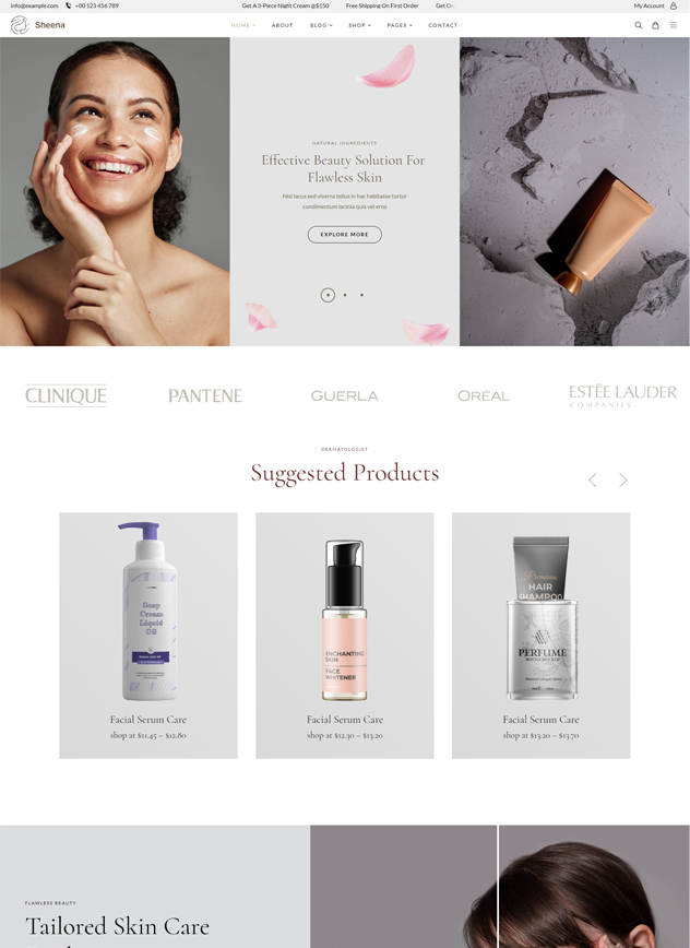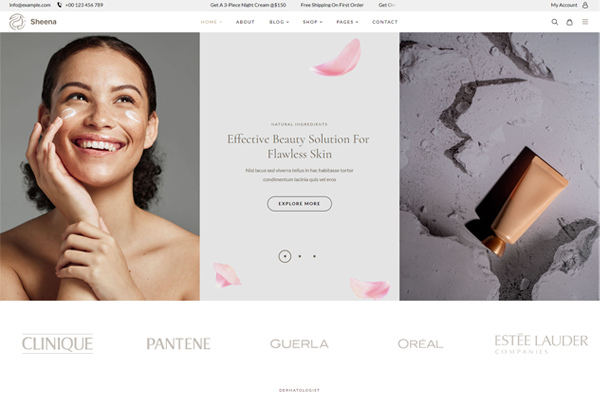Sheena is a fully customizable, responsive & sectioned WordPress Theme, A modern beauty store for cosmetic shops, wellness centers, beauty salons, skin care, nail salon, nail, face beauty, skin care products, organic skin care treatments, natural oils, health care