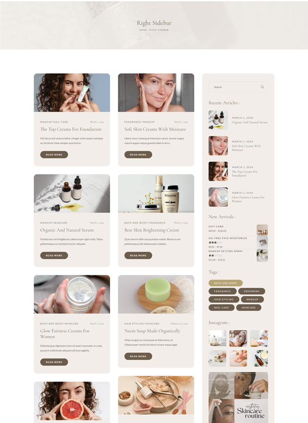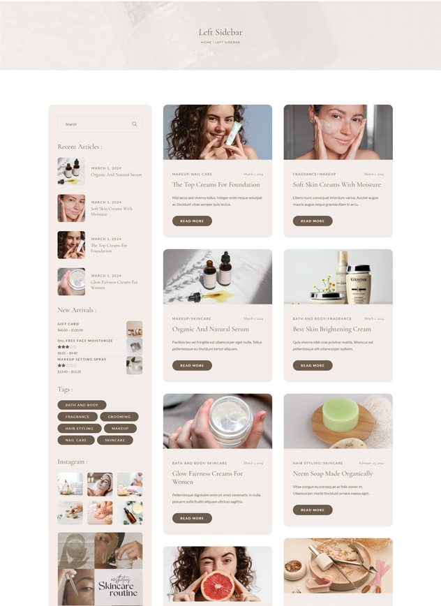 Sheena has unlimited blog layouts to select from, and even changes this on a page-by-page basis! Want one layout for one category, no problem! Create unique Blog pages, and provide the best user experience to the visitors.